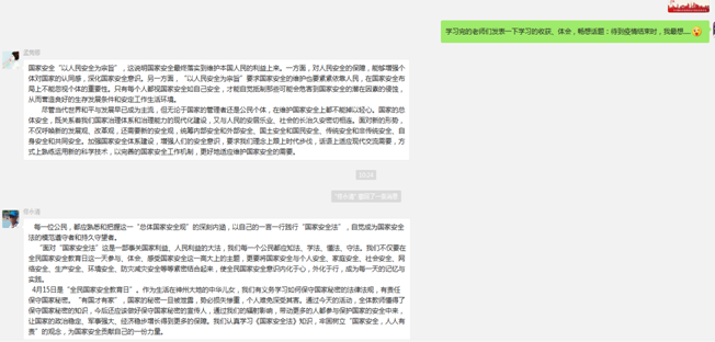 在线上学习活动中,教师们积极参与,掀起了学习国家安全知识的热潮,大家纷纷表示,通过视频学习,对总体国家安全观有了更深入的理解,对基于总体国家安全观的抗疫全过程和老员工应当履行的应对突发公共事件的职责义务有了更清晰的认识。在疫情期间认真工作的同时,也要时刻关注国家安全问题,提高维护国家安全的责任感,为国家发展贡献自己的力量。
