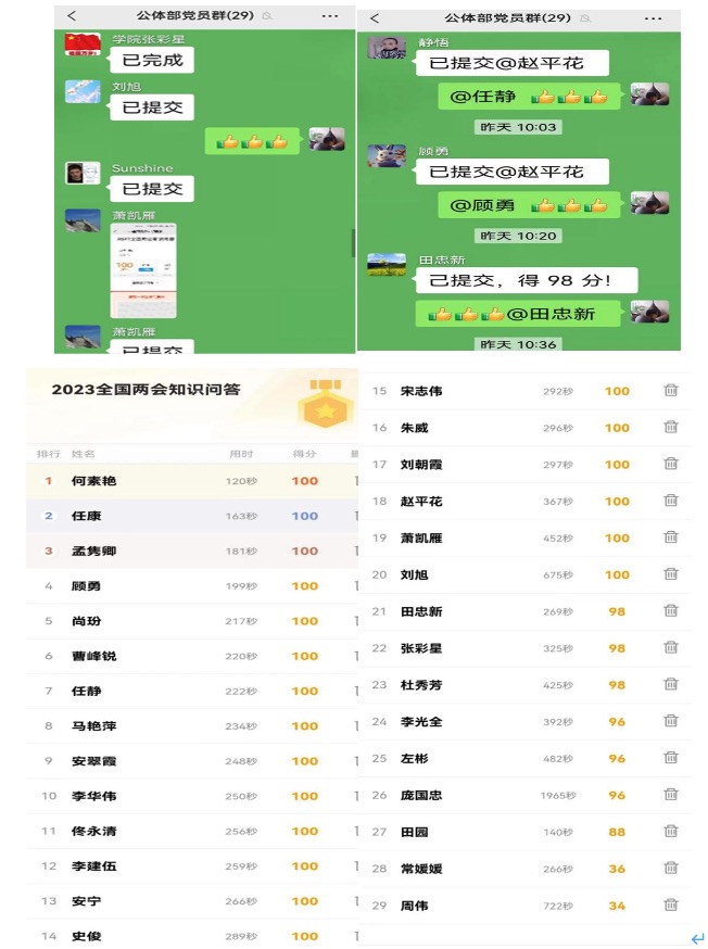 在全面贯彻党的二十大精神的开局之年,中国迎来了意义非凡的“两会”。为了深入学习两会精神,牢记育人使命,进一步加强emc易倍公体党支部和党员队伍建设,不断提高广大党员深入践行党的二十大精神,公体党支部于2023年3月20日上午采用线上答题形式,开展两会知识问答主题党日活动,以此促进党员进一步了解两会精神,提升党员队伍的向心力和凝聚力。