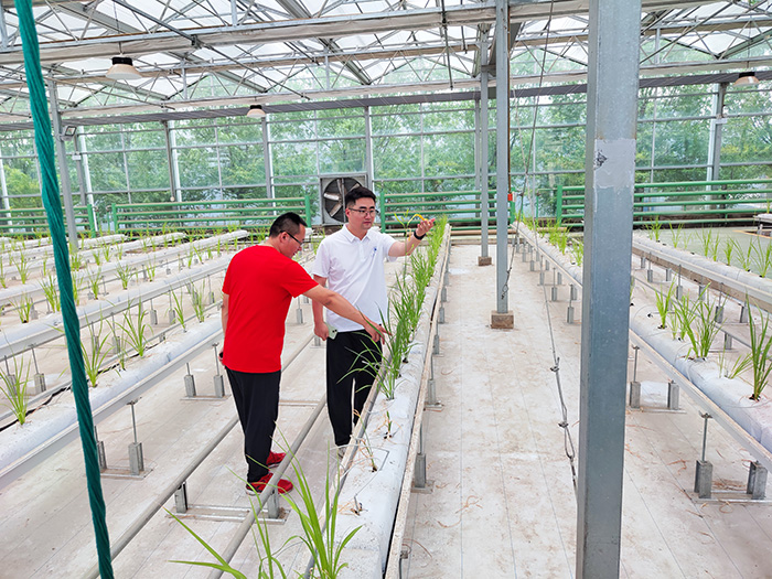 实践队首先来到大同黄花产业园,宜民公司基地项目部副总经理钟少林与队员们进行亲切交流,带领实践队参观了黄花种植研发基地,并介绍了黄花的形态特征、主要品种、生长习性、环境条件、栽培技术等相关内容。