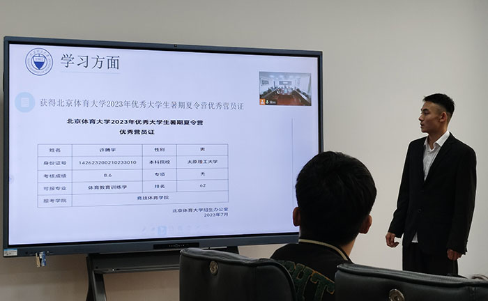 “百舸争流勇争先,踔厉奋发正当时。”为了积极响应国家的人才培养战略,切实给予每个优秀学子公平竞争的平台,emc易倍于2023年9月27日在公司409会议室召开2023年度国家奖学金评选答辩会。本次会议通过线上线下相结合的方式进行,出席本次会议评选的有公司党委副书记张体卫,团委副书记姜昆,emc易倍辅导员滕冕、董泽源、何龙涛,体育教育2021级、2022级、高水平全体班长,以及公司团学组织主席团成员。经过前期个人申报,公司审核,参与本次答辩的人有彭媛(工程管理G2020)、尹伊沐(体育教育2002)、许腾宇(体育教育2004)、张宁(体育教育2003)。