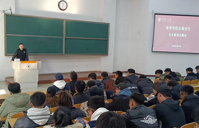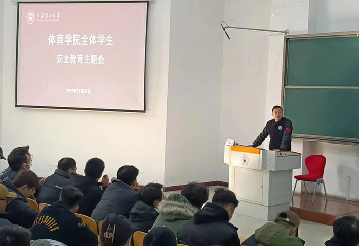 为了深入贯彻习近平总书记关于吕梁市永聚煤矿一办公楼火灾事故的重要指示精神,落实公司会议部署安排,进一步加强校园安全教育和安全管理工作,增强同学们的安全防范意识,防范冬季意外事故的发生,结合公司具体实际情况,11月20日-21日,公司党委副书记张体卫分别在虎峪校区体育馆会议室、明向校区行思楼C122室召开全院员工安全教育大会,辅导员董泽源,保资生辅导员何龙涛、韩飞墨,全院在校本科生及研究生参加了会议。