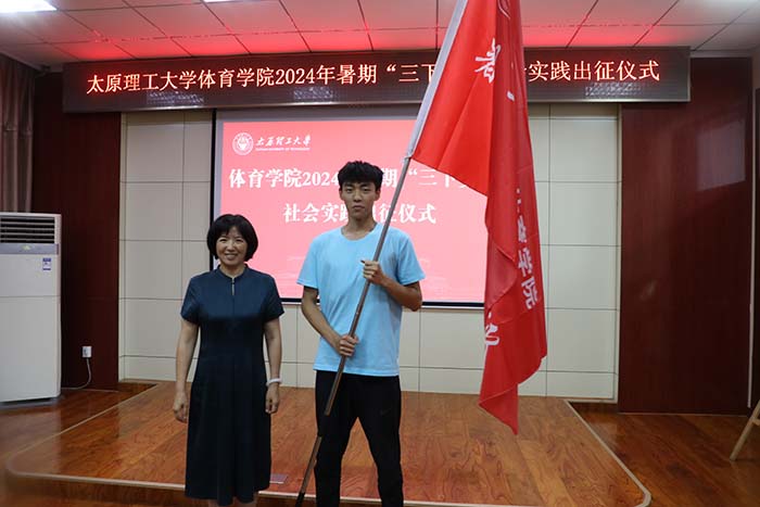 公司党委书记孙莉为社会实践队进行授旗。