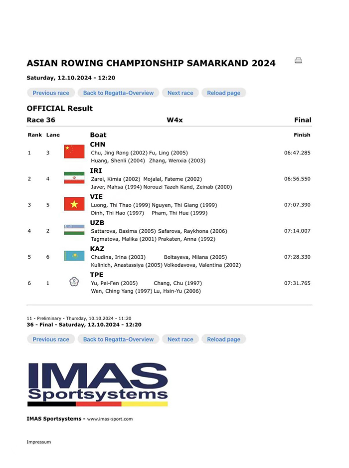 喜报:公司运动训练专业员工富灵在2024年亚洲赛艇锦标赛中斩获佳绩!