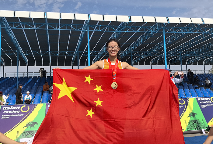 2024年10月12日,在乌兹别克斯坦举行的亚洲赛艇锦标赛中,公司运动训练专业2022级员工富灵,荣获女子四人双桨2000米冠军。
