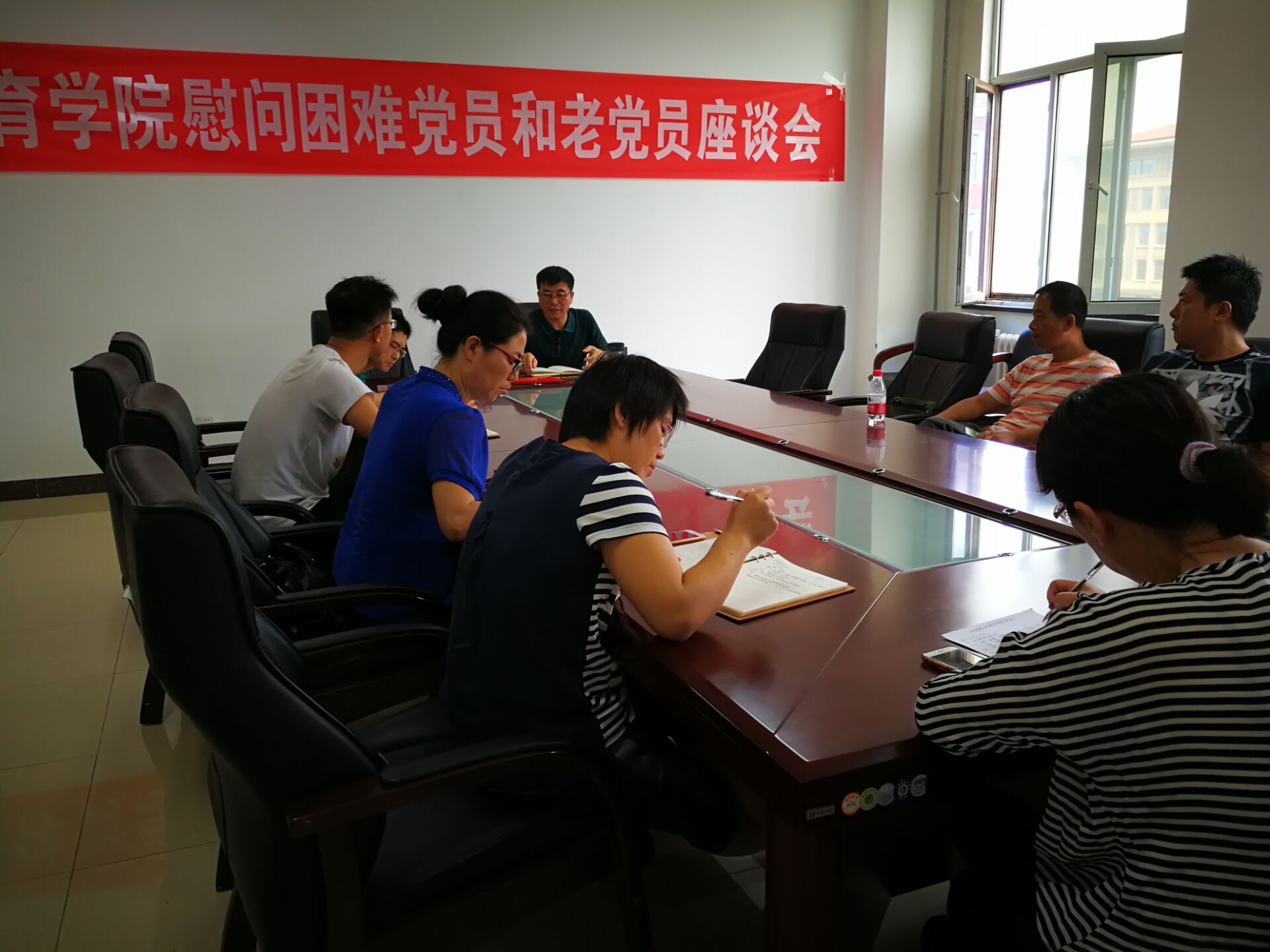 困难党员代表孟隽卿老师代表三名困难党员感谢党组织的关心和帮助。他表示,困难是暂时的,他们有信心通过自己的努力改变困难的现状。他表态,一定坚守岗位,做好本职工作。老党员代表田忠新老师表示,感谢党组织的慰问。他表示,党组织心系群众,给予了精神上的鼓舞。同时表态说,将认真履行党员义务,发挥余热,为公司的发展贡献自己的力量。老党员们还围绕公司的发展建言献策,就基层组织建设、发展青年教工入党等问题提出了合理化的建议。