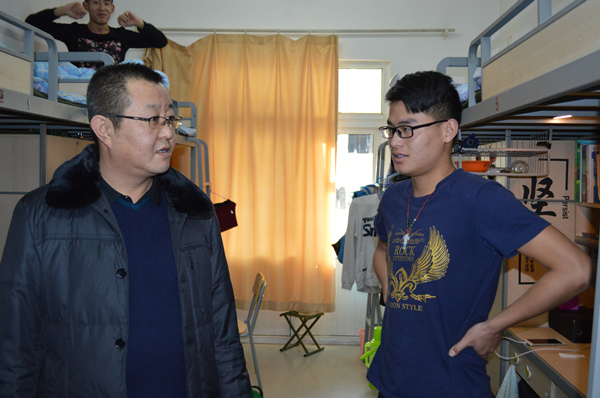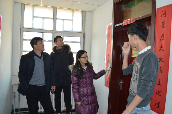 1月13日上午,公司党委书记任晋军、党委副书记张忠璞、教科办主任宋志伟一行前往明向校区员工公寓9、10、17、19号楼,对公司本科生宿舍进行了学期末的例行安全隐患排查工作,针对员工宿舍目前存在的问题现场进行讨论研究,并提出整改方案。辅导员何晓雁、潘崇帅、高晨晖也一同前往。