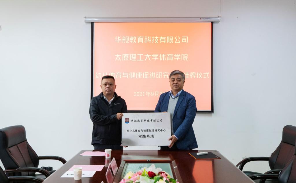 2021年9月23日,emc易倍与山西华舰体育教育科技发展有限公司在emc易倍三层会议室举行“幼少儿体育与健康促进研究中心实践基地挂牌仪式”,华舰体育教育科技发展有限公司副总经理党志强、山西力能教育科技有限公司负责人李楠以及公司党委书记孙莉、经理史冬博、副经理田忠新共同出席了挂牌仪式。