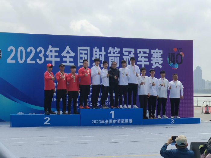 公司运动训练专业曹晗森同学与队友合力勇夺2023年全国射箭冠军赛男子团体冠军