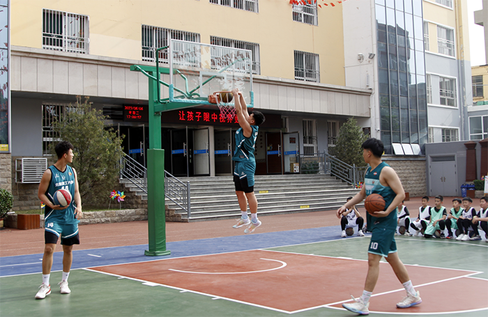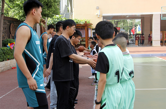 捐赠仪式过后,高水平篮球队队员进行了篮球表演及教学活动。活动开始前,他们认真分析了小员工们的年龄特点和篮球水平,制定了适合小员工们的篮球教学计划,并进行了反复的练习和调整。在活动现场,公司篮球队队员通过简单、易懂的语言,向小员工们传授了篮球基本技能和战术,让小员工们在轻松愉悦的氛围中学习篮球知识,提高篮球水平。