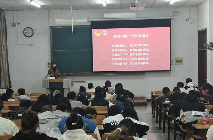 在虎峪校区,机械公司辅导员边仲凯就《知团情,明使命,树榜样》为主题与高水平运动队、运动训练专业青年学子进行交流,授课中,边仲凯从共青团的组织性质、发展历史以及共青团员的权利和义务三方面切入,鼓励团员从强“三性”、去“四化”做起,成为有责任、有担当的青年。材料公司辅导员许通陆开展了题为《牢记嘱托学思想,挺膺担当建新功》的专题授课,系统讲解了习近平新时代中国特色社会主义思想的世界观和方法论,并通过影片展播,勉励广大青年,尤其是作为体育专业的青年员工要励志弘扬体育精神,助力体育强国建设,在新的征程上勇建新功。