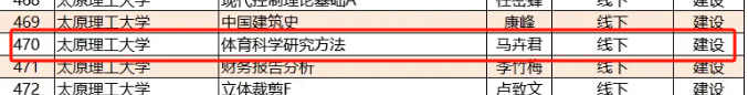 其中,公司副教授郭兆霞老师的线下课程《体育课程与教学论》认定为省级一流课程;博士马卉君老师的线下课程《体育科学研究方法》为省级一流培育课程。