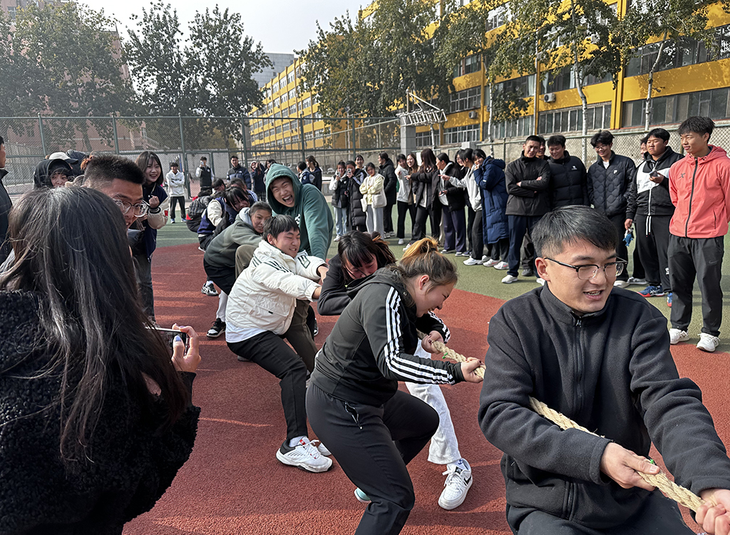 各个班级的代表人员组成16人的队伍(至少有1名女生),共计25支参赛队伍。随着一声哨响,拔河比赛正式拉开帷幕。参赛队员们个个斗志昂扬,紧握长绳,脚抵着脚,卯足了劲往后拉仿佛握住了整个世界的重量。在比赛过程中,各队队员齐心协力、奋勇拼搏,他们涨红了脸,咬紧牙关,不到最后一刻绝不放弃。场边的观众也被这热烈的气氛所感染,纷纷为自己支持的队伍呐喊助威,加油声、欢呼声此起彼伏,响彻整个赛场,斗志与激情燃尽了整个体育场。