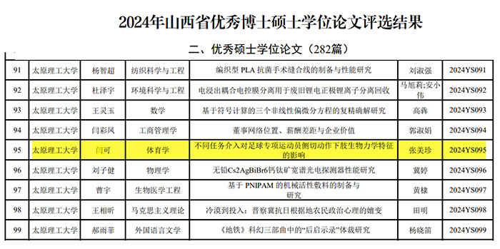 emc易倍2021级硕士生闫可荣获 山西省优秀硕士学位论文