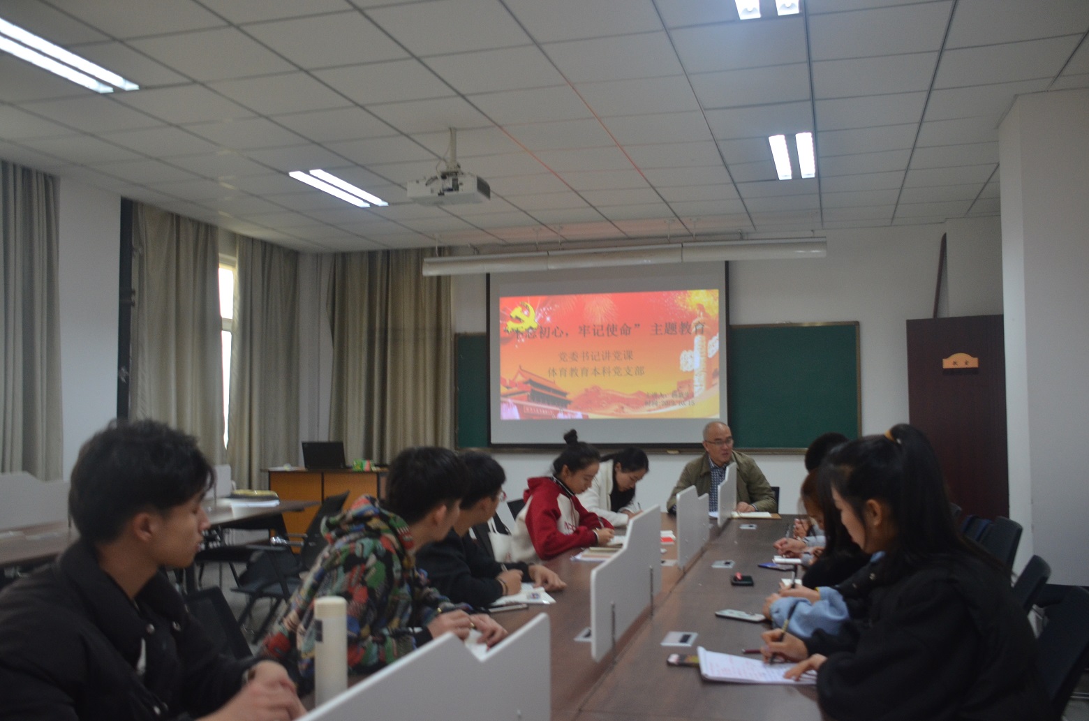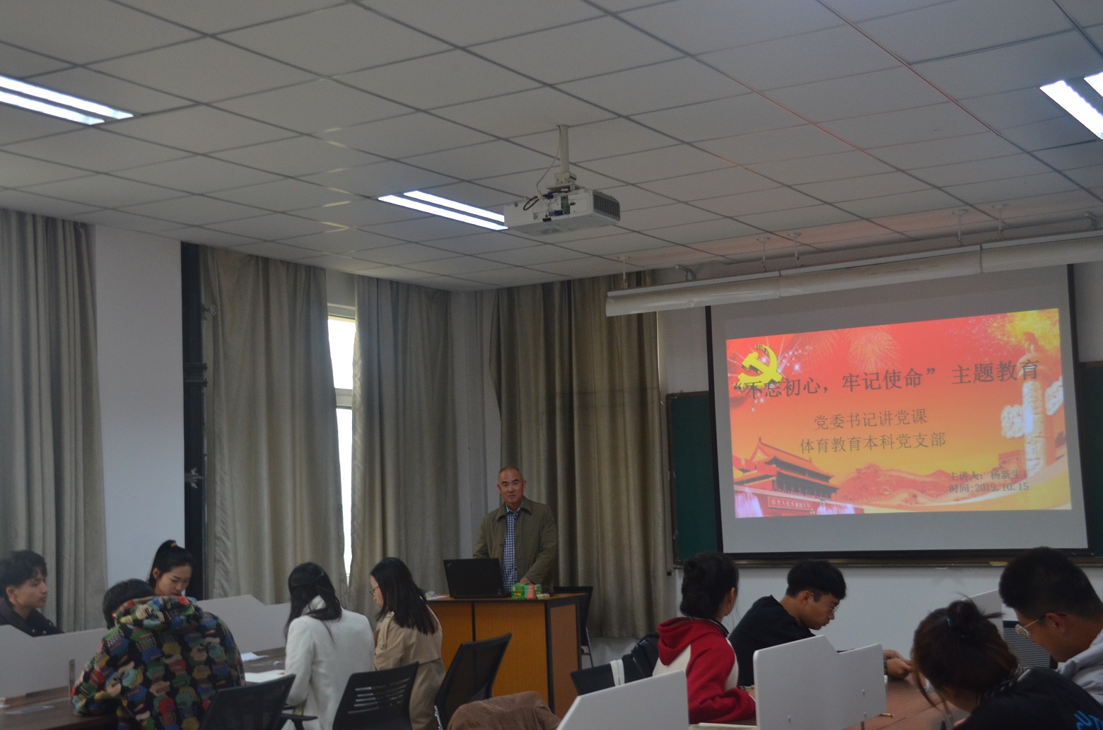 10月15日中午,公司党委书记杨新生与体育教育本科党支部党员和发展对象、积极分子在公司503教室一同开展了“不忘初心、牢记使命”主题教育党委书记讲党课活动。