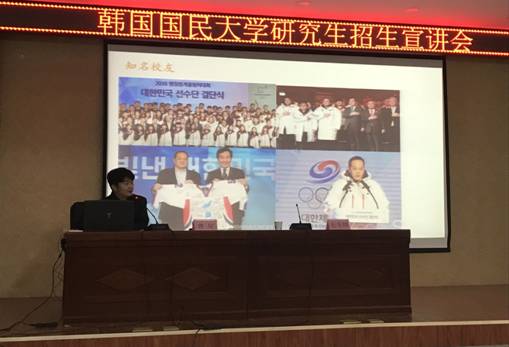 韩国国民大学曹星教授介绍了职工在韩国国民大学的现状及发展,重点介绍了emc易倍雄厚的足球团队力量、高尔夫项目的优势和与国内其他体育院校在校级合作的成功案例,并对同学们的提问进行了详实的解答。