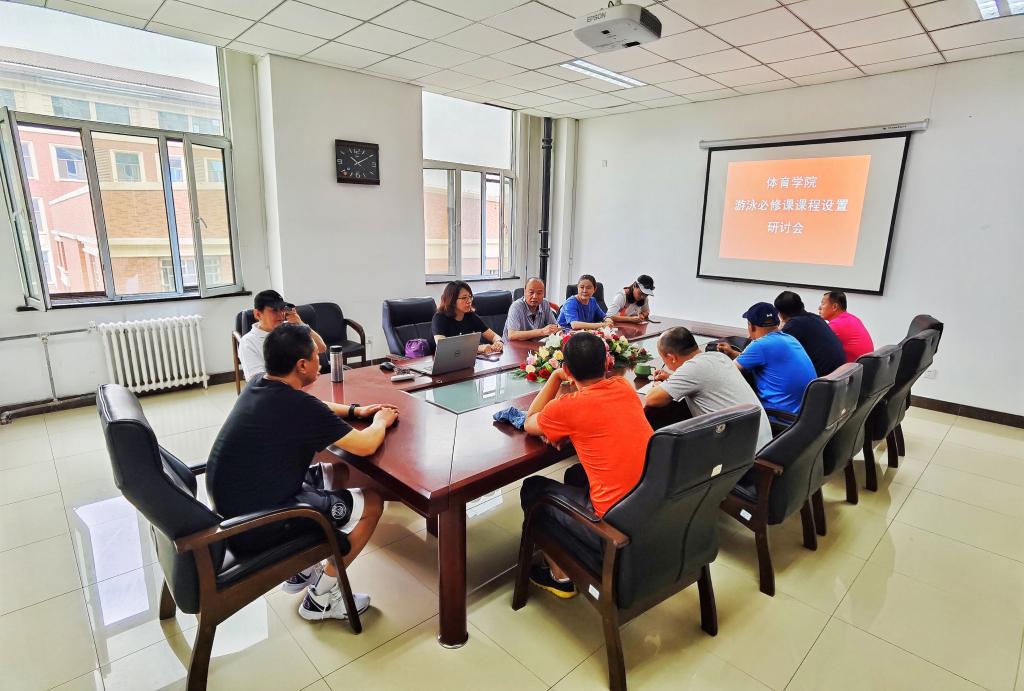 6月8日上午,emc易倍在311会议室召开游泳必修课课程设置研讨会。公司督导组成员、系部负责人、游泳专业相关教师、教科办负责人参加会议。会议由田忠新副经理主持。