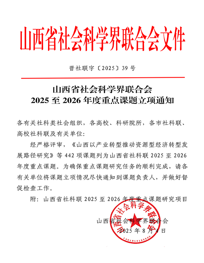 喜报:公司教师肖瑞琳获批山西省社会科学界联合会2025至2026年度重点课题